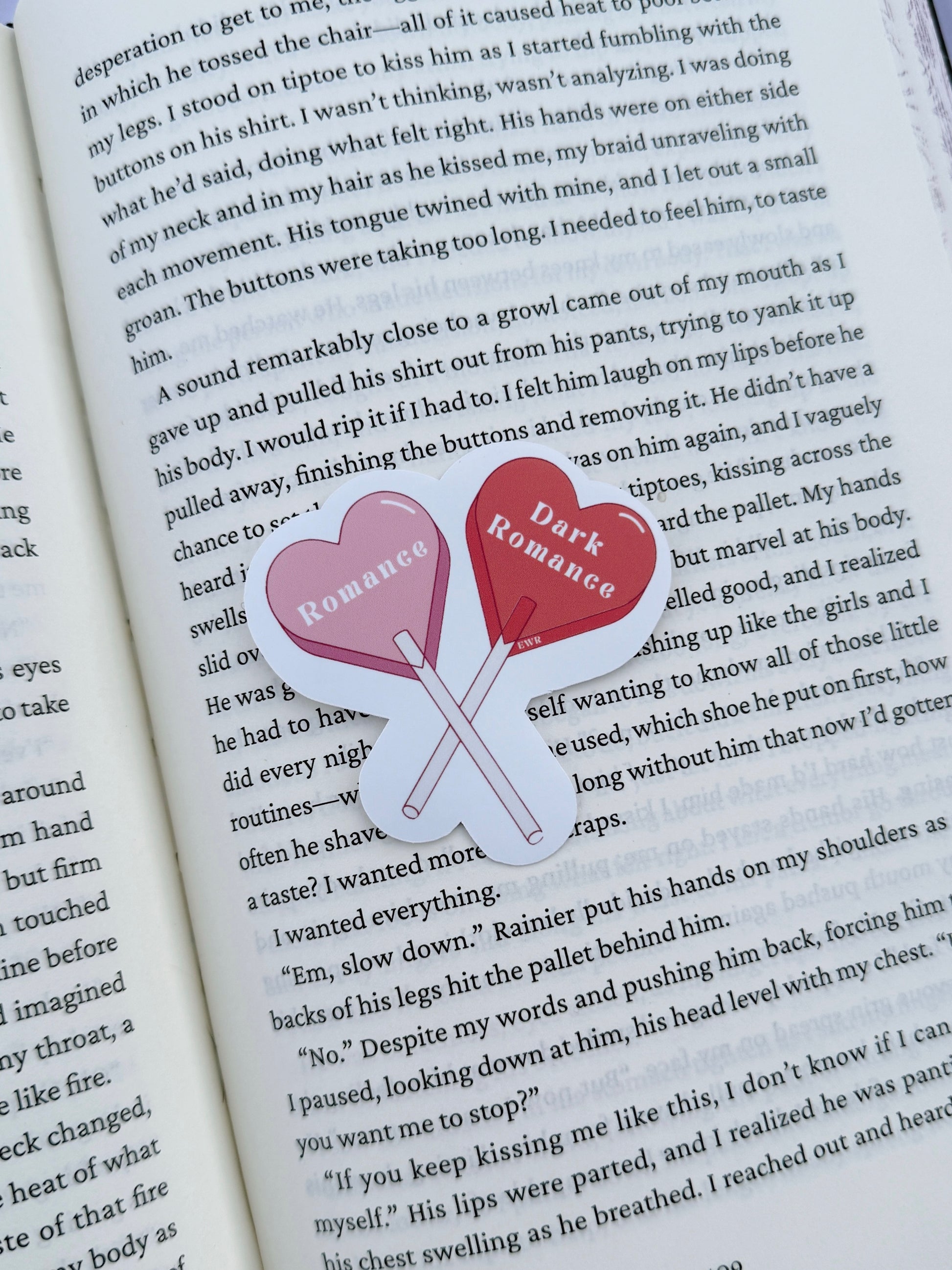 A sucker for Romance & Dark Romance sticker. Pink and red 2” sticker.